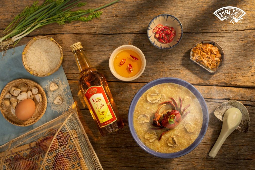 Có lần, tui thấy tía vừa ăn cháo cua đồng vừa nhấm nháp ly rượu “Ngự tửu” Phú Lễ nức tiếng xứ này. Tui cũng tò mò học uống theo: vừa vào khoang miệng có chút the cay, đăng đắng nhưng để lại hậu vị ngọt, chát nhẹ và ấm nồng mùi rơm rạ. Từ hạt gạo trên cánh đồng cho ra tô cháo cua dân dã, cho ra những giọt rượu chuối hột vàng óng ánh thơm lừng. Quả đúng là “tuyệt tác” của thiên nhiên và con người!